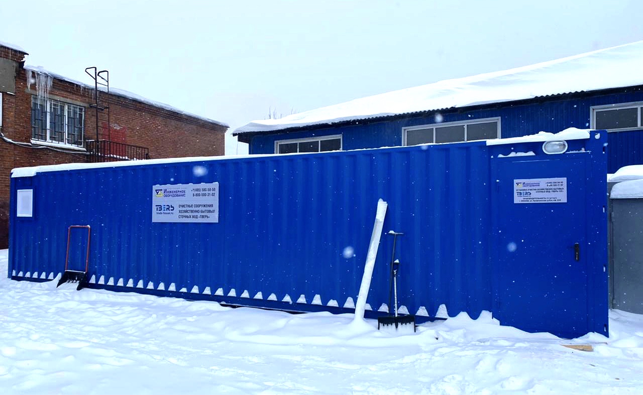 Станция очистки бытовых сточных вод "ТВЕРЬ-3С" представляет из себя утепленное здание из блок-модулей, установленных на фундаменте, со всем технологическим оборудованием внутри.